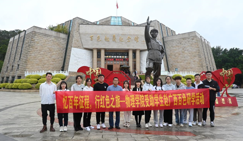为深入学习宣传贯彻党的二十大精神,进一步激发浦京官网学生坚定理想信念,帮助学生拓展视野、提升素养,3月3日-3月4日,浦京官网组织了部分师生赴广西百色市开展了以“忆百年征程·行红色之旅”为主题的资助育人研学活动。活动由党委副书记蒋津辉、辅导员于丹、龙思宇、石城宇、周小琦带队,14名学生参加。