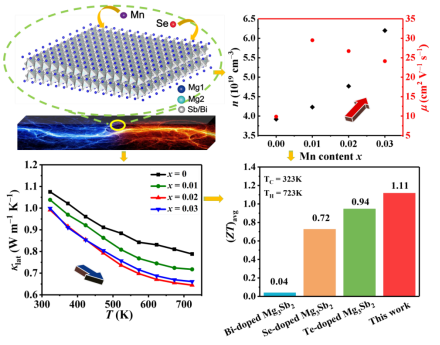 该研究工作通过对材料的电、热输运性能进行协同优化,获得了热电优值为 1.6的高热电性能n型Mg3Sb2基热电材料。这一研究成果对热电材料的应用与发展具有重要意义。